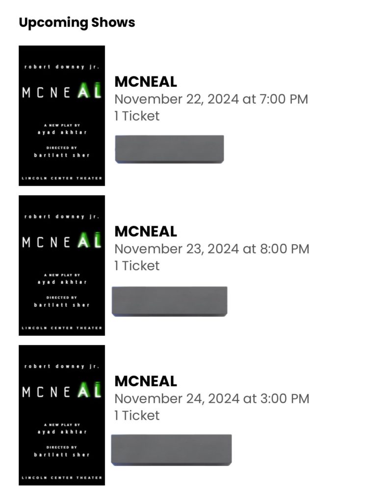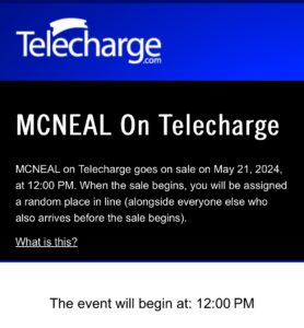 で、次はホテルです。McNealが本上演されるのは、ビビアン・ボーモント・シアターです。
