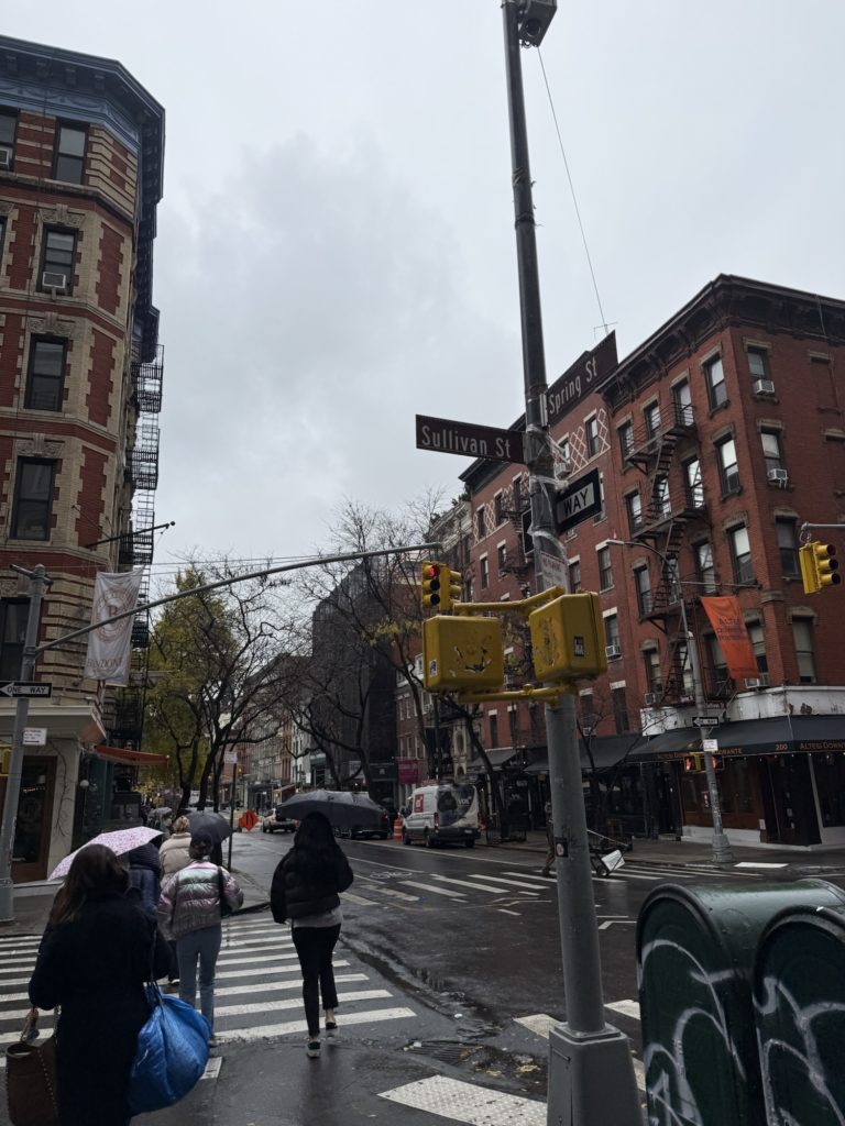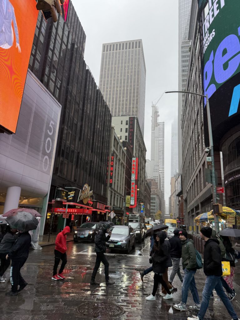 外に出ると雨は相変わらず降り続いていて、気づけばパンツの裾が濡れまくっていて……決して綺麗とは言えないNYの路上でこの濡れっぷり。正直気持ち悪いけど、どうすることもできず。