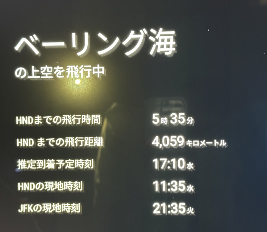 それから寝て起きて、あと 5時間半で到着という、ベーリング海の上空で起床。