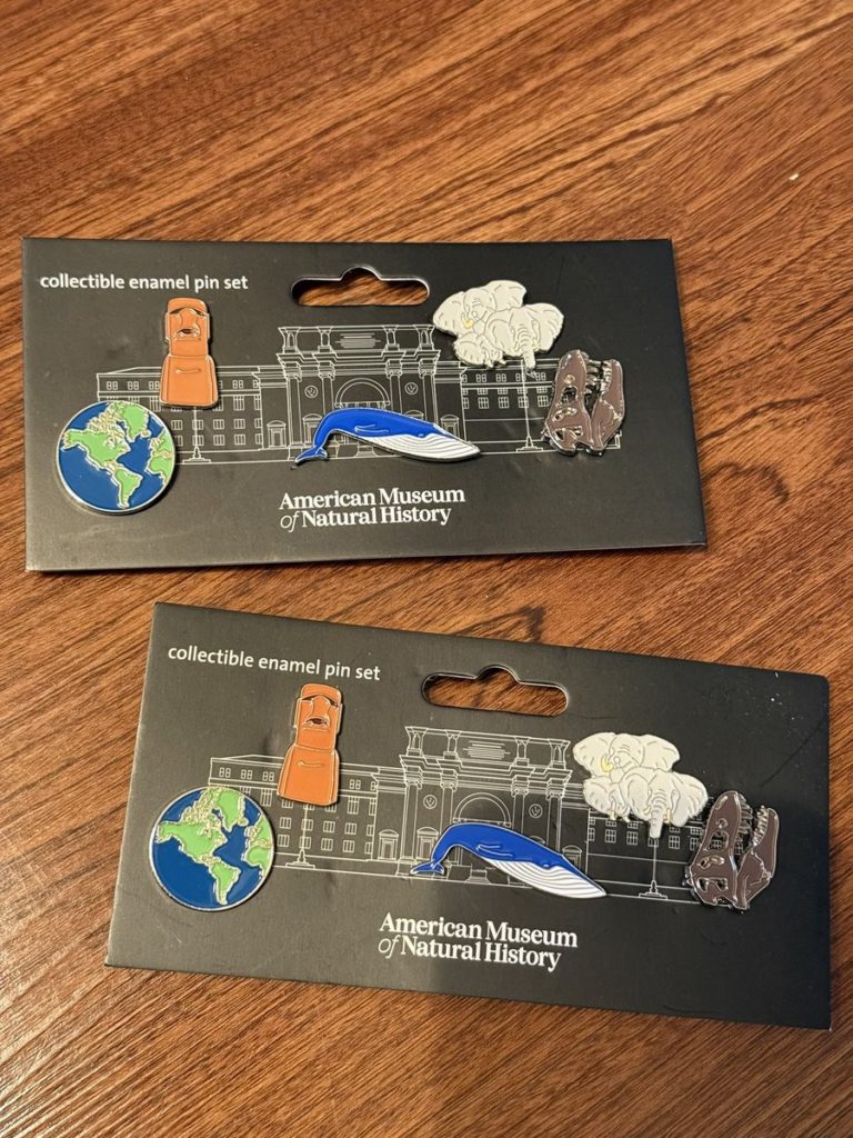 自然史博物館は、ぬいぐるみは恐竜だのマンモスだの色々あって欲しかったんですが、なんせ大きすぎて…。一番『行きました』感満載なピンバッチを購入。