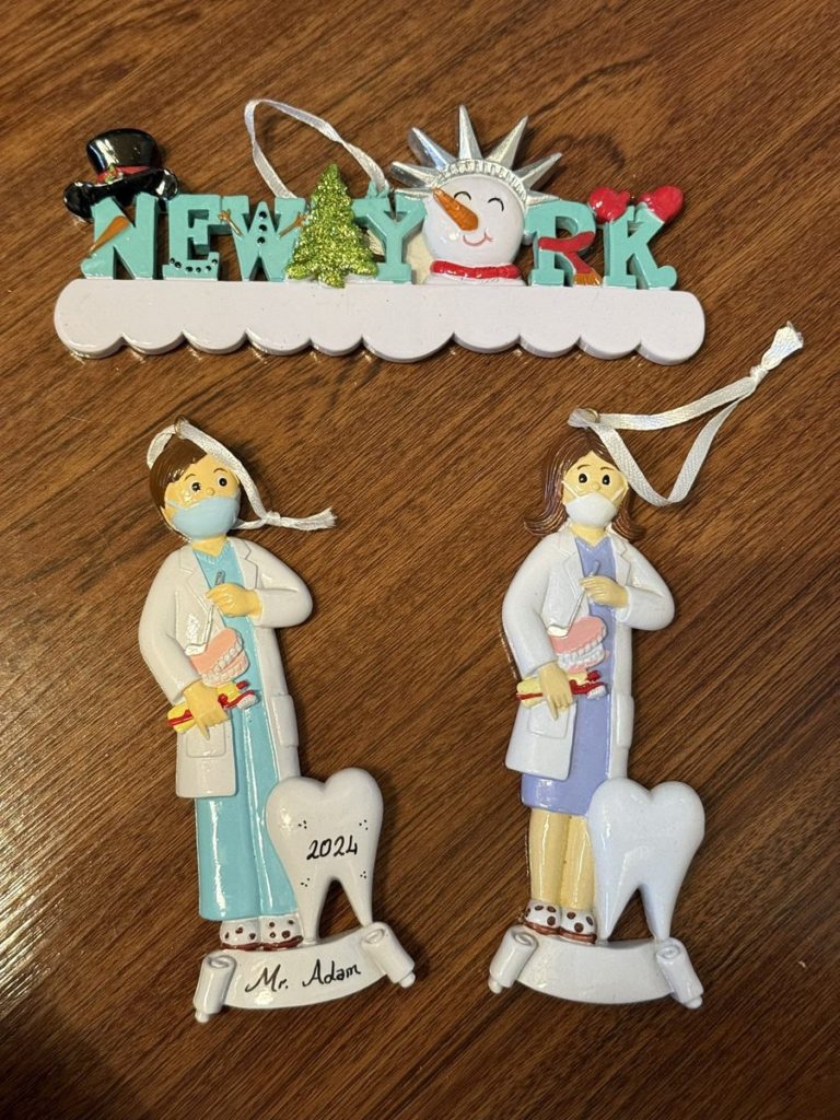 ブライアント公園のクリスマスマーケットにて。この歯医者さんオーナメントがあると事前リサーチしていたので、探して購入。
