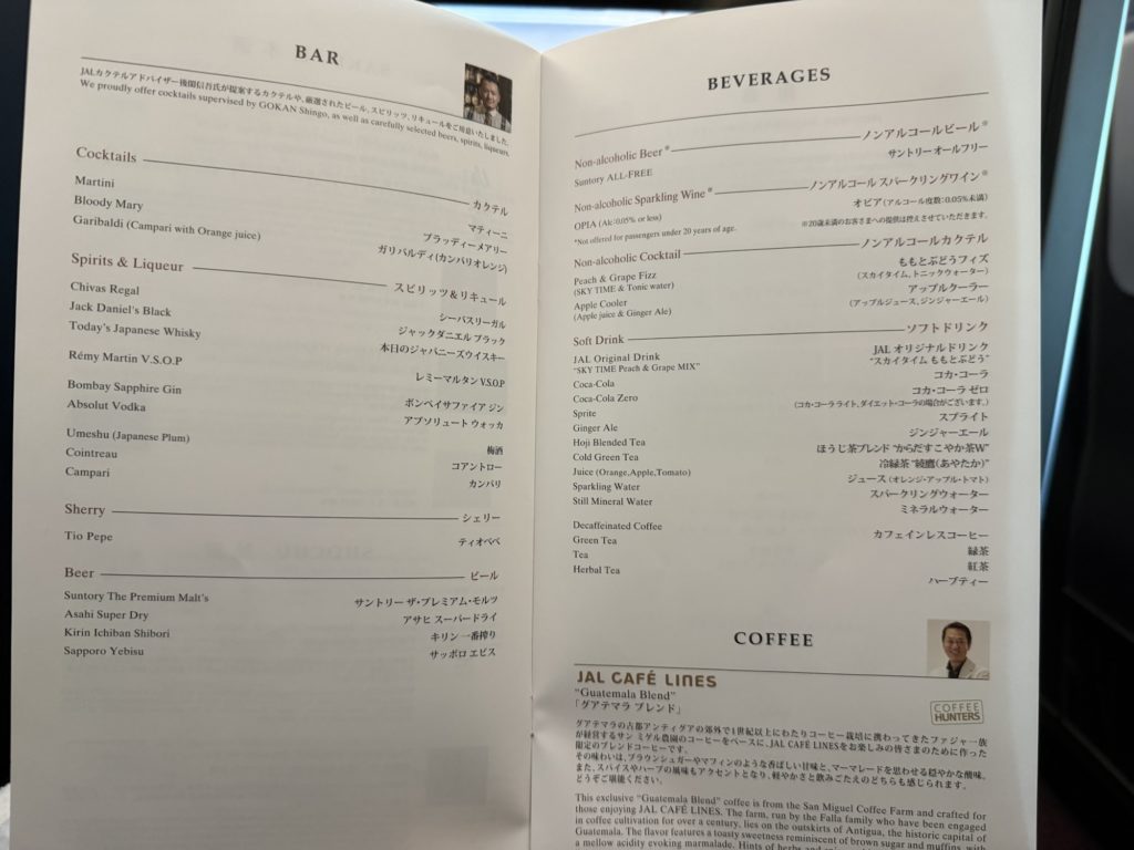 ビジネスクラスも空席があったためか、今回は機内食が早く出てきました。