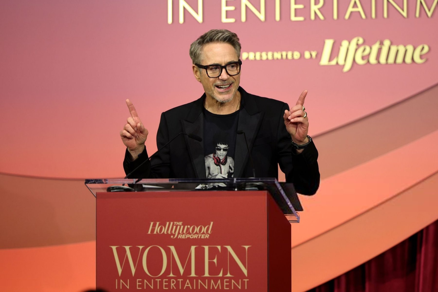 2025/12/3 Photo 2025.12.04 Robert Downey Jr. speaks onstage during The Hollywood Reporter Women In Entertainment Presented By Lifetime at The Beverly Hills Hotel on December 03, 2025 in Beverly Hills, California.