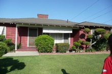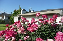アメリカンな家に日本風の植木…。