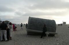 海岸に置かれた石のローラー。 なんでも、これを砂上で転がすと、地図ができるとか…。