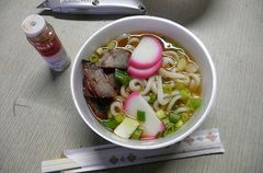 やけにピンクなかまぼこと、ポークが入っているうどんがアメリカな感じでしたが、 寒い中での暖かいうどん、美味しかったです♪
